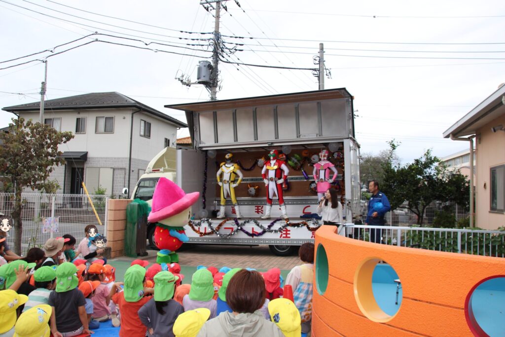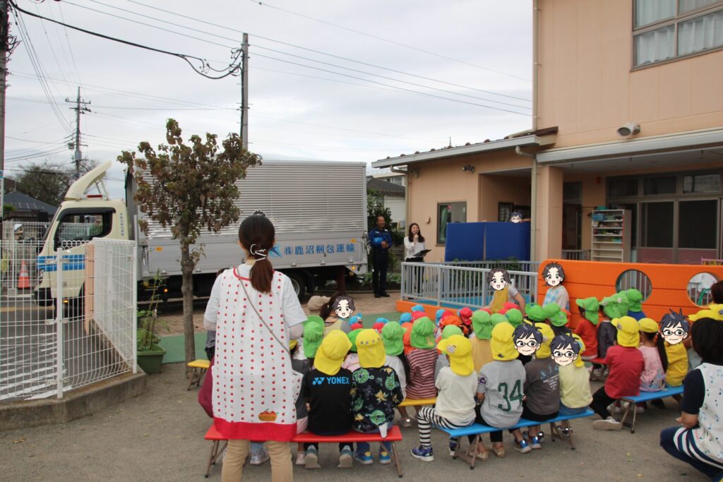 10月9日 宇都宮市内の交流のある保育園の園庭で、鹿沼市のPRを兼ねた「働く車とのふれあい体験会」を園児を対象に開催しました!