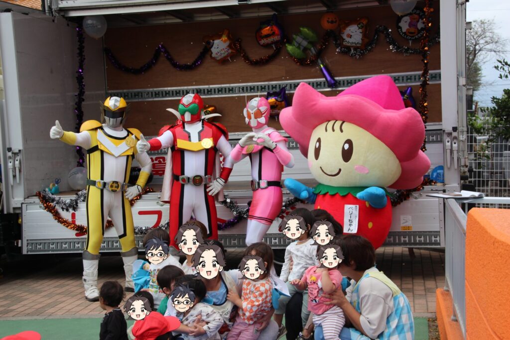 大きな着ぐるみに驚いて泣いてしまう子もいましたが、キャラクターたちが優しくハイタッチや手をつないでくれると、不安も吹き飛び、すぐに最高の笑顔に。